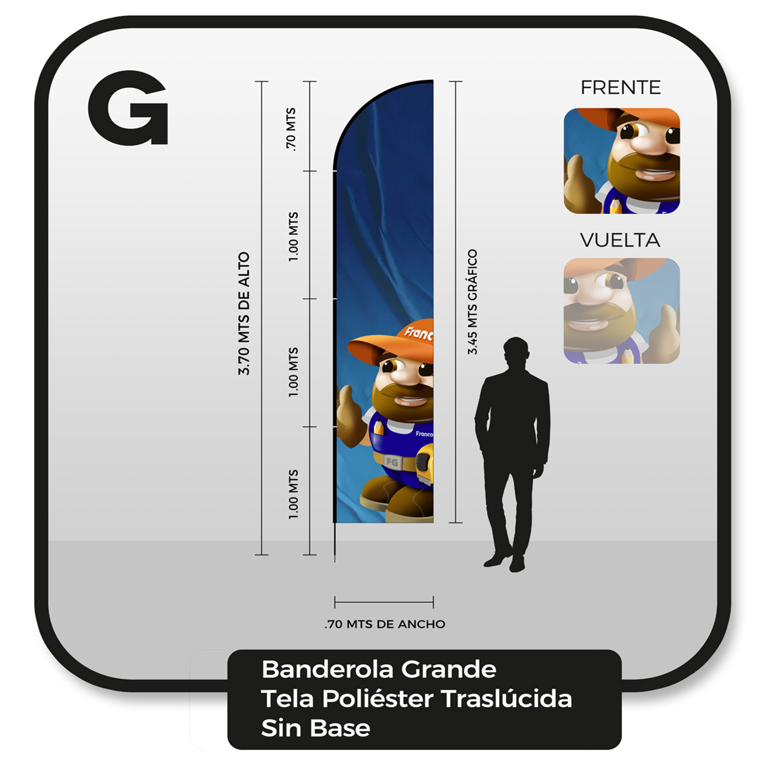 Banderola grande con tela traslucida sin base de 0.70 x 3.70 mts con impresión personalizada
