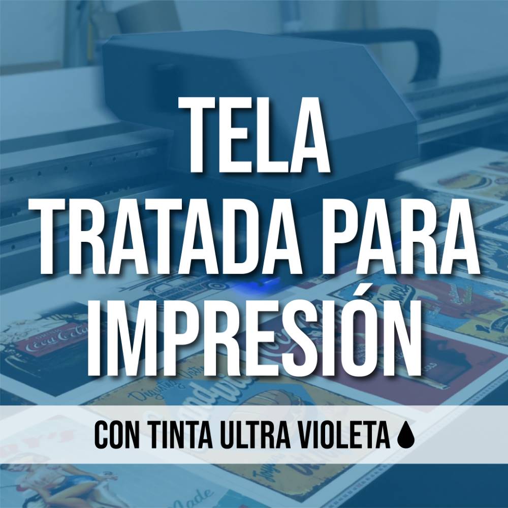 Impresión digital de gran formato en Cama Plana con tinta UV sobre Tela tratada para impresión