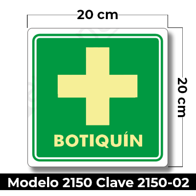 Señal de «BOTIQUIN» eleborada en estireno calibre 40 con fotoluminicente medida de 20 x 20 cm.