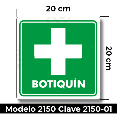 Señal de «BOTIQUIN» eleborada en estireno calibre 40 medida de 20 x 20 cm.