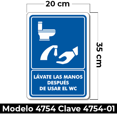 Señal de «LAVARSE LAS MANOS» eleborada en estireno calibre 40 medida de 20 x 35 cm.