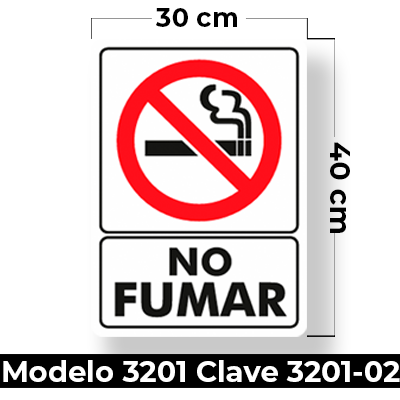Señal de «NO FUMAR» eleborada en estireno calibre 40 con fotoluminicente medida de 30 x 40 cm.