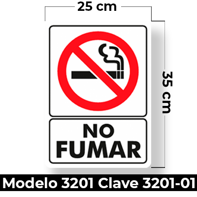 Señal de «NO FUMAR» eleborada en estireno calibre 40 medida de 25 x 35 cm.