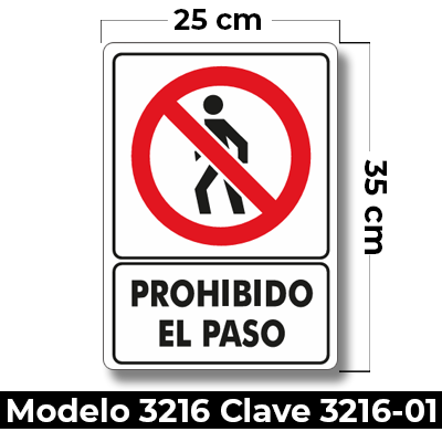 Señal de «PROHIBIDO EL PASO » eleborada en estireno calibre 40 medida de 25 x 35 cm.