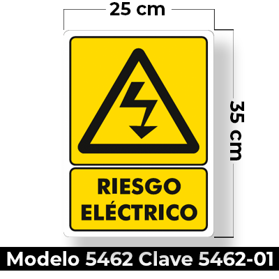 Señal de «RIESGO ELÉCTRICO» eleborada en estireno calibre 40 medida de 25 x 35 cm.