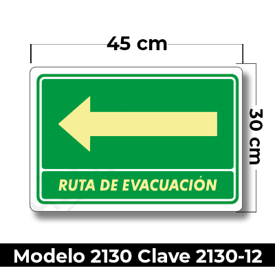 Señal de «RUTA DE EVACUACION DERECHA» eleborada en estireno calibre 40 con fotoluminicente medida de 30 x 45 cm.