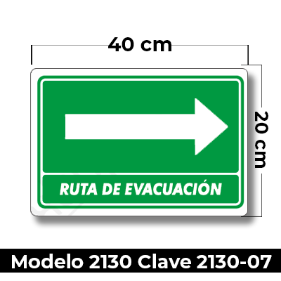 Señal de «RUTA DE EVACUACION DERECHA» eleborada en estireno calibre 40 medida de 20 x 40 cm.