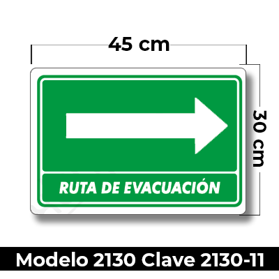 Señal de «RUTA DE EVACUACION DERECHA» eleborada en estireno calibre 40 medida de 30 x 45 cm.