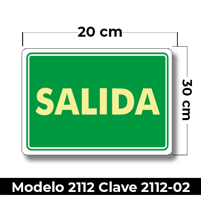 Señal de «SALIDA» eleborada en estireno calibre 40 con fotoluminicente medida de 20 x 30 cm.
