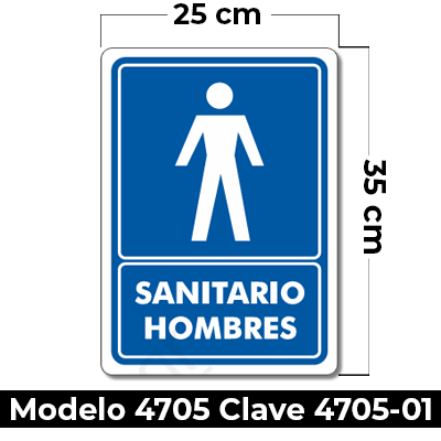 Señal de «SANITARIO CABALLEROS» eleborada en estireno calibre 40 medida de 20 x 35 cm.